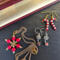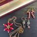 The candy canes were made with alternating red and white seed beads and once I got them on the head pin and curled the end, I bent them into the candy cane shape. I added a jump ring at the top and added them onto earring hooks.