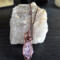 The amethyst is a raw crystal, double-terminated (meaning it has a point at the top and the bottom), and has a teeny tiny point growing off of its left side. Please see the pictures for details.