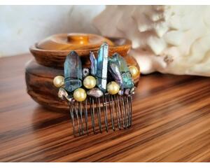 Wire Wrapped Quartz Points and Pearls Decorative Hair Comb