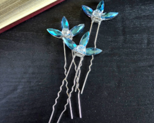Wire Wrapped Silver Hair Forks with Blue Petal Beads-Set of 3