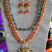 The pendant was added onto a handmade bail to sit over the top of the beads, but it doesn't slide around. The earrings were made to mimic the strand that the pendant sits on, since it's more of a focal strand.