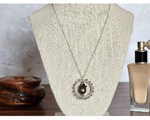 Baroque Pearl and Smokey Gray Bicone Silver Pendant with Thin...