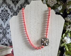 Victorian-Inspired Pink Pearl Necklace with Repurposed Brooch...