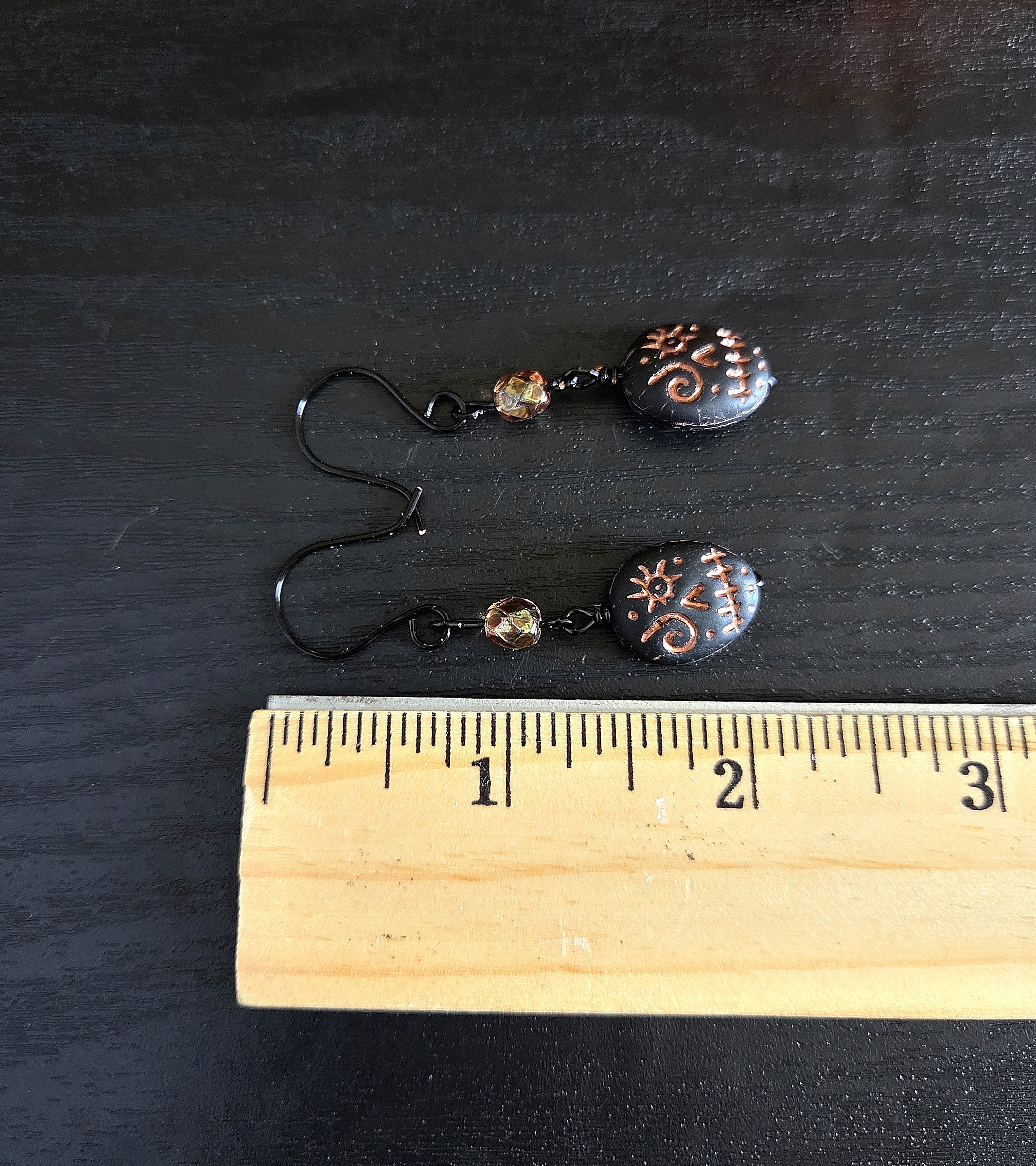 Earrings measure just a little bit over 2" long